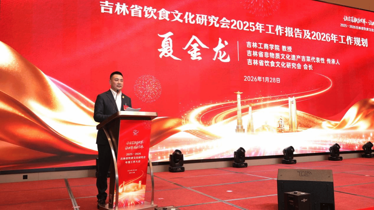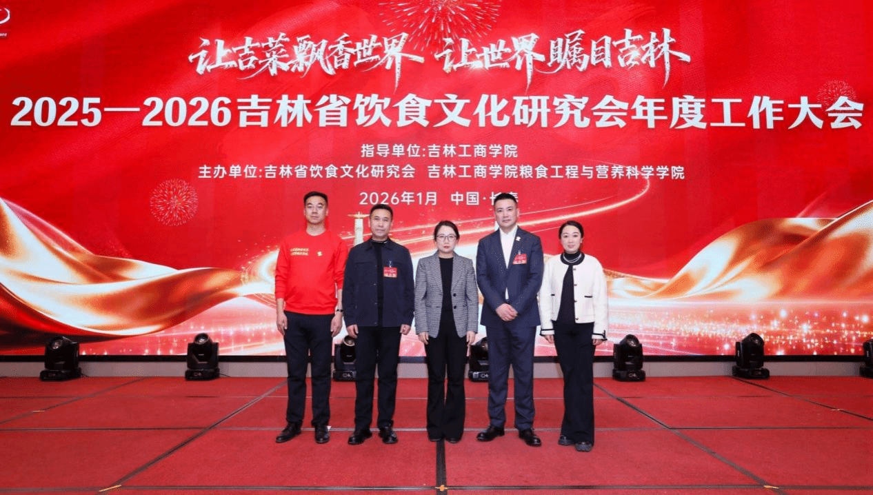 2026年1月28日,吉林省饮食文化研究会2025-2026年度工作大会在长春和润记忆酒店召开。大会以“让吉菜飘香世界、让世界瞩目吉林”为核心目标,由吉林工商学院指导,粮食工程与营养科学学院与研究会共同主办,是学院落实学校“五个一行动”、服务吉林区域发展的具体举措。研究会会长夏金龙教授、学院副院长田海娟及朱基富等三位教师出席会议,与行业同仁共探产教融合与吉菜产业振兴路径。