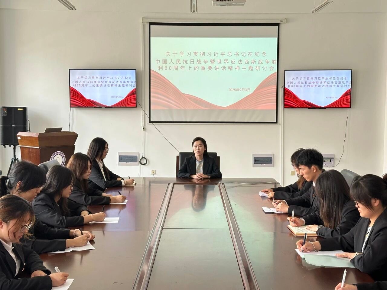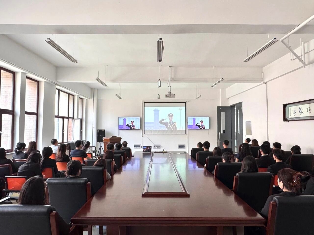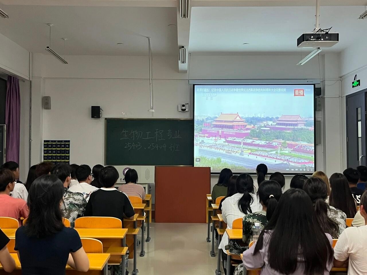 2025年9月3日上午,中国人民抗日战争暨世界反法西斯战争胜利80周年纪念大会在北京天安门广场隆重举行。粮食学院党委组织教职工代表和学生代表在善思楼B314会议室,共同收看了这场气势恢宏的阅兵直播盛况。