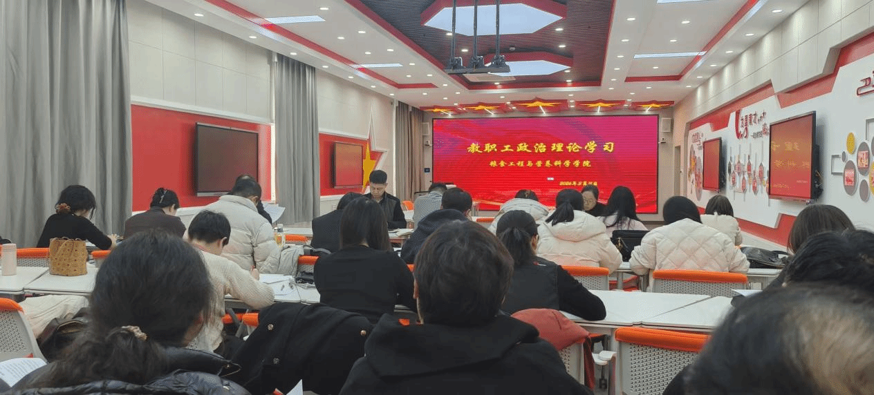 3月11日下午,粮食工程与营养科学学院召开教职工政治理论学习暨科技奖励申报专题培训会。本次会议以“思想铸魂、业务赋能”为核心,统筹推进政治理论学习、重点工作部署与科研能力提升,分为两大板块有序开展,为学院各项事业高质量发展筑牢基础。