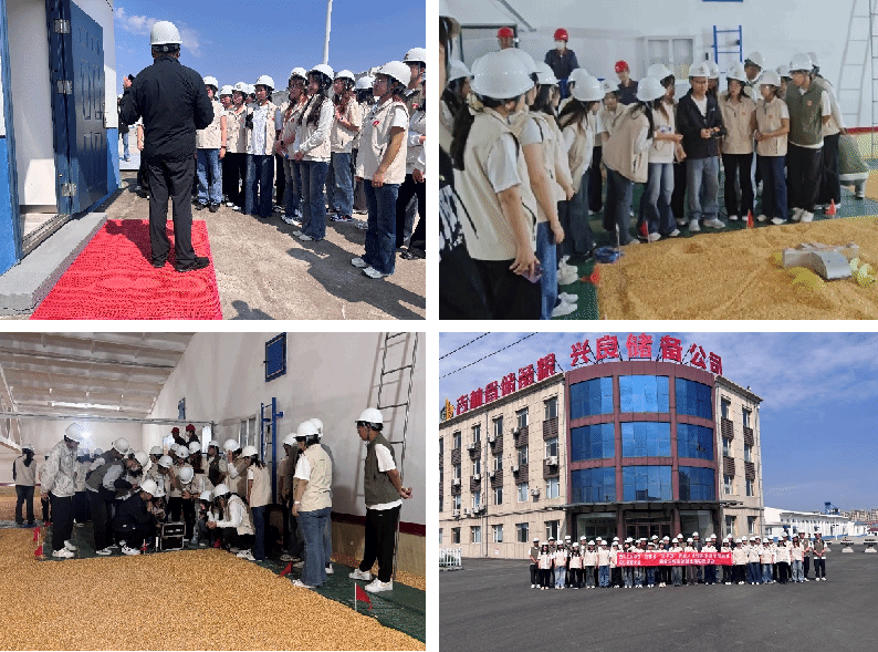 在吉林省兴良储备粮有限公司,师生团队深入探访现代化粮食仓储体系。公司领导、粮食学院88届优秀校友孙青春总经理带领学员实地考察平房仓储区、质检培训中心、安全警示室及智能监控系统。重点观摩了吉林大学研发的最新科技成果平仓机器人作业系统和粮情实时监测仪,同学们通过实际操作,切身感受物联网技术对传统粮储管理的革新升级,对"智慧粮仓"建设有了全新认知。