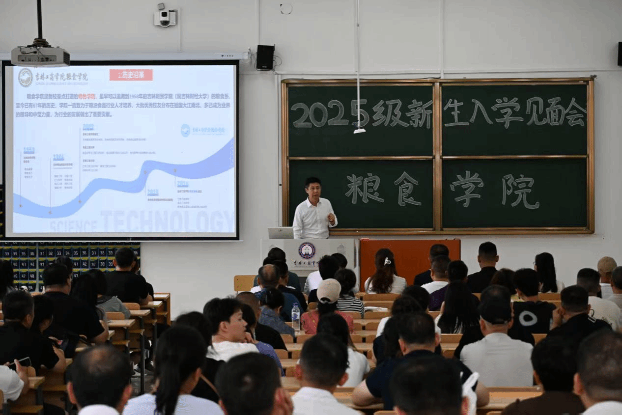 随后,孙肖明副院长以“教学相长传薪火,家校协作育‘粮’才”为主题,将学院的整体情况向在场家长进行了详细介绍。他系统回顾了学院自1958年成立以来67年的办学历程,突出介绍了学院作为吉林省特色高水平学科建设单位的重要地位,并围绕学科建设、专业设置、师资队伍、实践教学及教科研成果等维度展开,全面展现了粮食学院的办学优势与深厚底蕴。最后孙肖明强调,学院始终以学生成长为中心,将扎实的实践条件、广泛的校企合作与持续深化的国际交流合作相结合,全力为每一位学生的成长成才保驾护航。